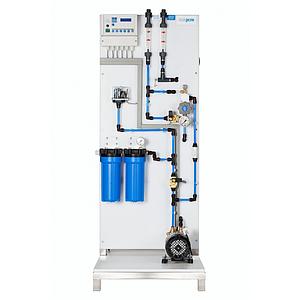 • Részei: előszűrő egység, nagynyomású szivattyú, működési- és tápvíz nyomásmérő, áramlásmérők, szabályozó szelepek, bemeneti- és öblítő mágnesszelep, tápvíz nyomáskapcsoló, nagy teljesítményű RO modul, teljes csövezés, vezetőképesség mérő cella, mikroprocesszoros vezérlés LCD kijelzővel