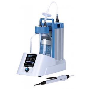 The BioChem-VacuuCenter BVC professional serves for aspiration and disposal of biological fluids, providing outstanding levels of comfort and safety for working with biological and biohazardous materials. A non-contact sensor monitors the liquid level in the collection bottle electronically and prevents overfilling. A disinfection routine allows the suction of disinfectants through aspiration hand set and tubing after switching off the pump, and so supports demanding safety protocols. The BVC professional with 4l PP bottle with self-closing quick couplings minimizes risk in transporting hazardous waste and of contamination in the workplace. The version with coated 2l borosilicate glass bottle allows you to work with aggressive disinfectants like chlorine bleach.